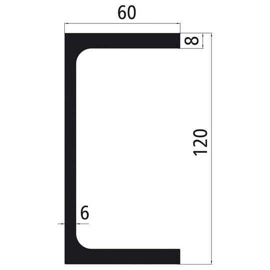 Aluminium U-profile 60x120x60x 8 mm, anodized