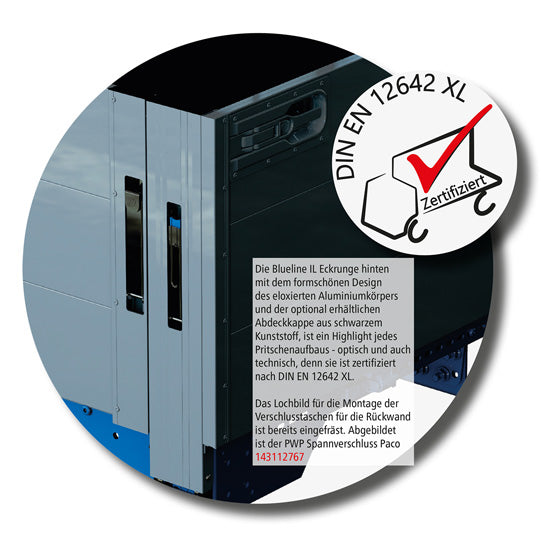 Blueline aluminum-corner stanchion IL, rear right, anodised, steel parts black KTL-coated, nominal height 400 mm, hole pattern for mounting the locking pockets