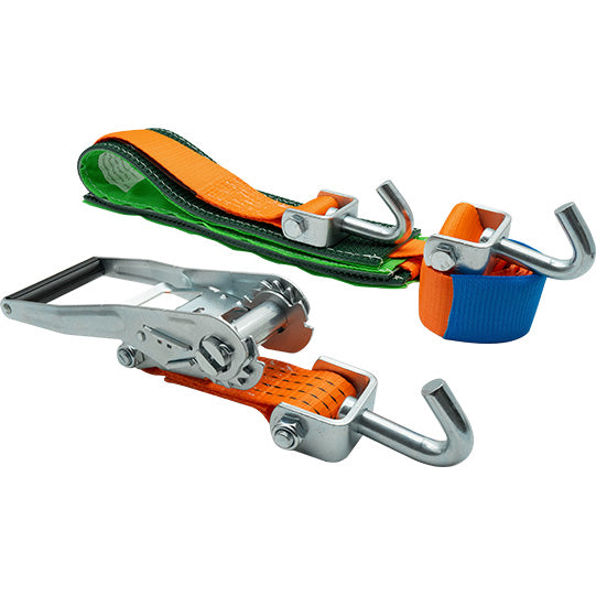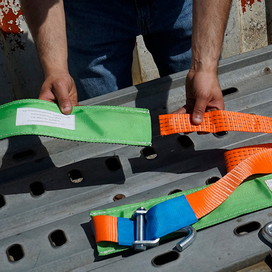 S-Line car transport strap 3033, 3.16 m, fixed end 0.16 m, loose end 3 m, two-piece, with pressure ratchet and swivel swivel hook 5010, fabric 50 mm, orange, LC 1500 daN in straight pull/3000 daN in strapping, STF 330 daN, elongation< 4 %, controller two-piece 400/800mm ETA>0.5 with label sewn in the centre, label sewn with protective film, manufactured and tested in accordance with DIN EN 12195-2 and VDI2700 sheet 8.1