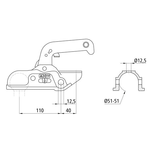 clutch WW 30-D3-1212, drawbar-Ø50 / 51 mm, round, total trailer weight 3000 kg