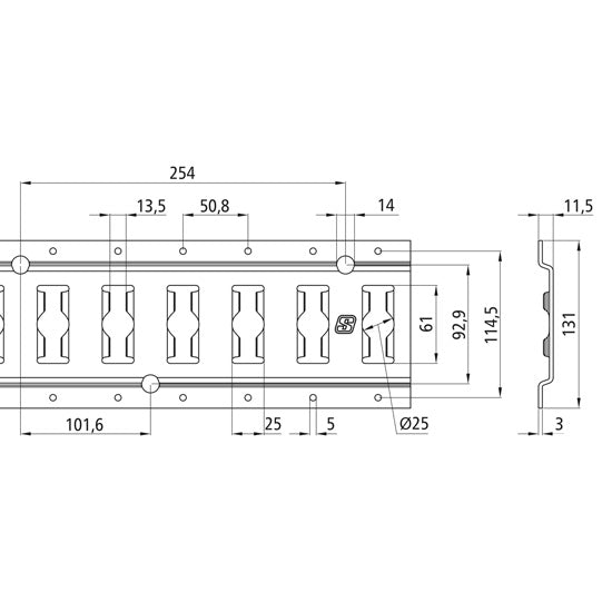 S-Line® Combination anchor channel 3009, galvanised steel, for horizontal wall mounting, length 3048 mm, compatible with combination spigot ø 19/24 mm and combination anchor channel end fittings, 3.0 mm