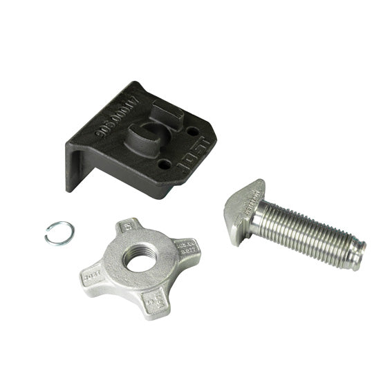 Container locking device F 10 SK-RV, for swap bodies up to max. 10 t permissible gross container weight, back plate 150 x 95, pivot Ø 38 mm (not ISO), can be tensioned and not lowered