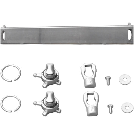 Cross member QT 160-80 VX for swap bodies up to a total container weight of 18 t, consisting of: Combination beam, raw, 2 locking devices, galvanized, 2 retaining rings, 2 latch kits