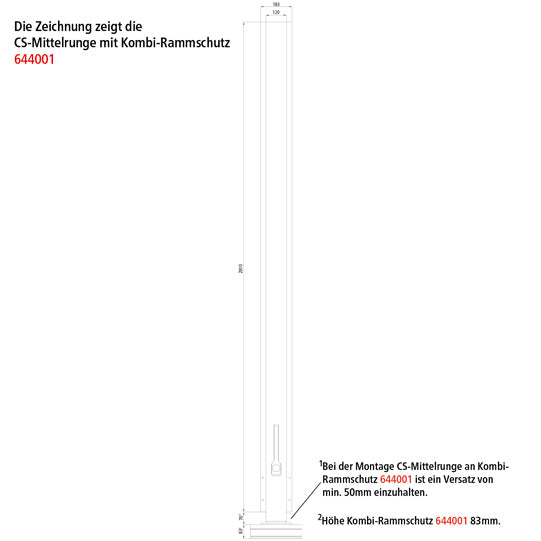 CS-centre pillar for SuerKombi impact protection, black KTL-coated steel