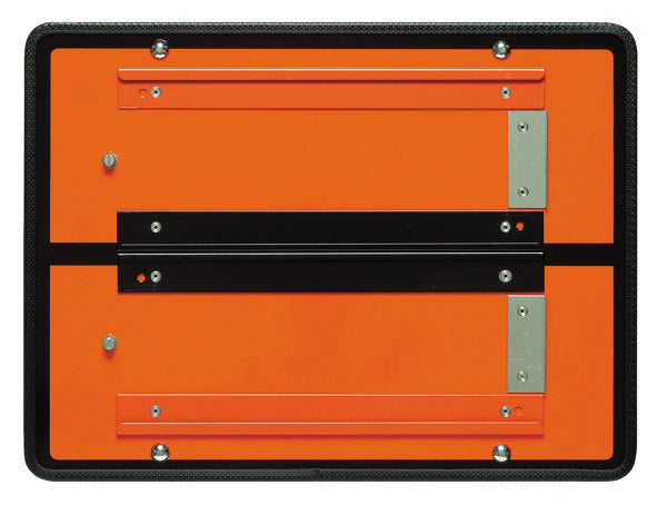 Rigid number plate, 400 × 300 mm, sheet steel with edge protection, without empty spaces, with 2 retaining brackets, type I, retroreflective RA1/A, orange with black edge, with fastening elements, hazardous goods warning sign in accordance with GGVSEB/ADR
