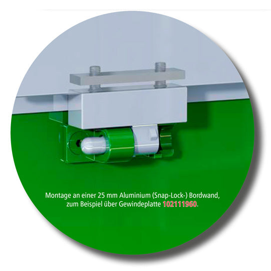 For mounting on small platform vehicles and car trailers with 20 or 25 mm aluminum side boards.