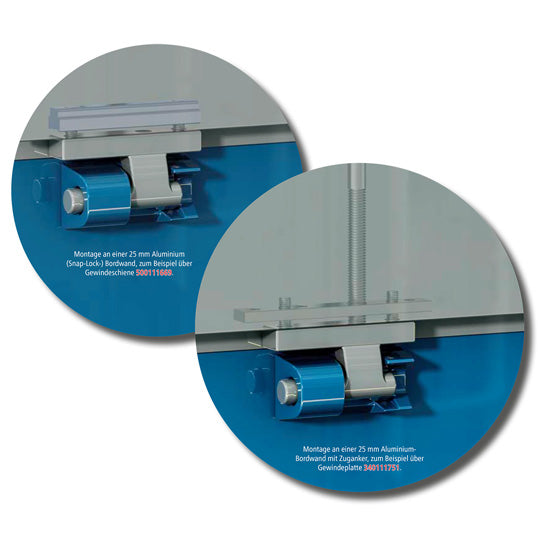 When folded down, the H 871 - K/24 safety hinge has a distance of 22 mm between the floor frame and the 25 mm aluminum side board. The H 871 - K/24 safety hinge is customs-certified, customs certificate no. Z 0720B-280/88-K 26. It is also considered accident-proof.