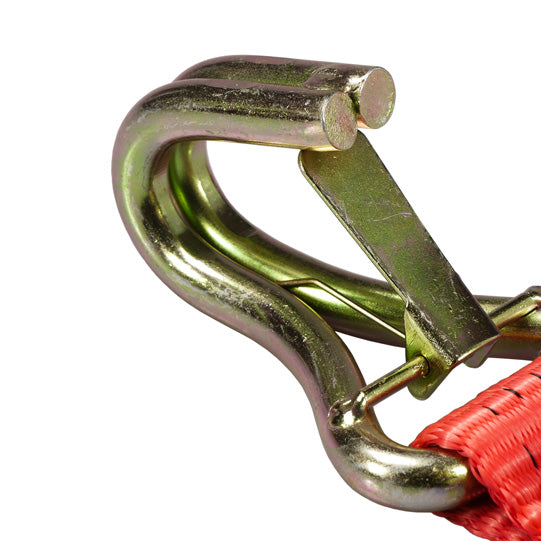 S-Line lashing strap 5035, 8 m, fixed end 0.5 m, loose end 7.5 m, two-part, with pressure ratchet R50E1 and double pointed hook with safety catch 5005, 50 mm webbing, red, LC 2500 daN in straight pull/5000 daN in strapping, STF 350 daN, elongation < 5 %, label sewn on the inside with protective film, manufactured and tested in accordance with DIN EN 12195-2, GS and TÜV-tested