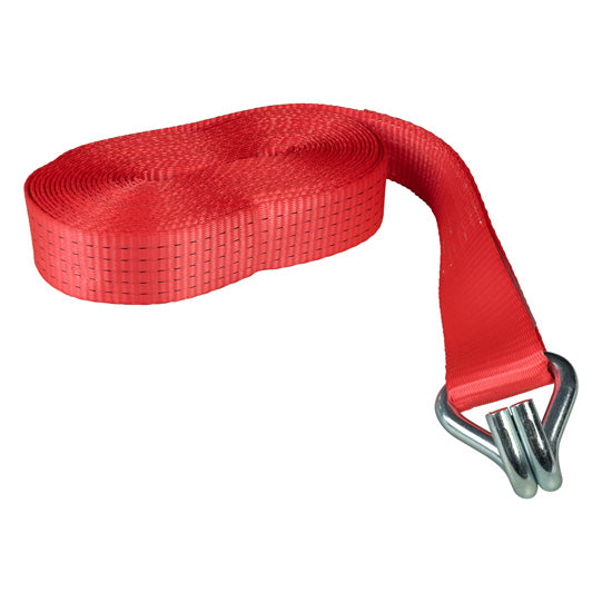 S-Line loose end 5000, 7.5 m, one-piece double pointed hook 5002, fabric 50 mm, red, LC 2500 daN in straight pull/5000 daN in strapping, elongation <5 %, label sewn on the inside with protective film, manufactured and tested according to DIN EN 12195-2