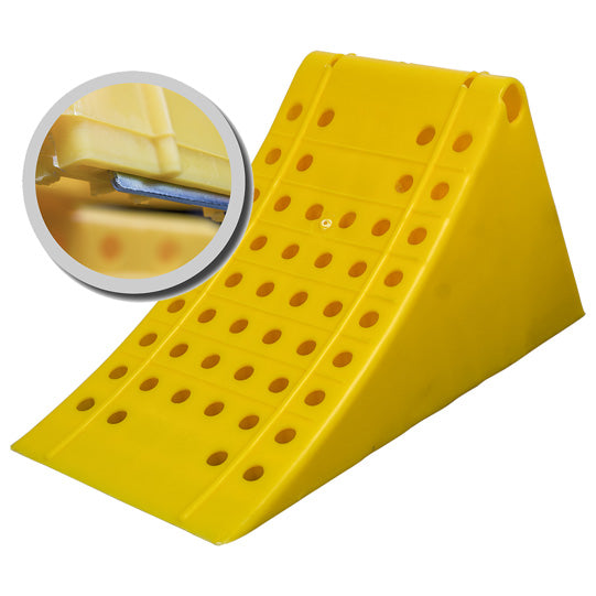 Kunststoff-Hemmschuh G 53/200, gelb, mit Gleitschutzblech, DIN 76051