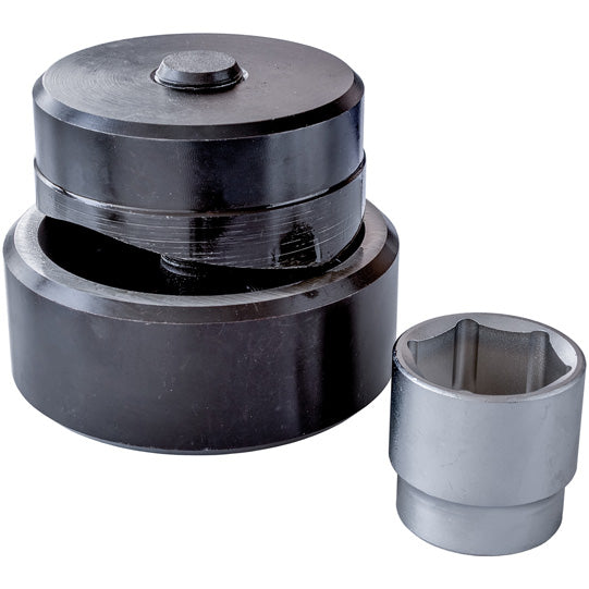 With lag screw and 36 mm/½" socket wrench for punching Ø90 mm holes.