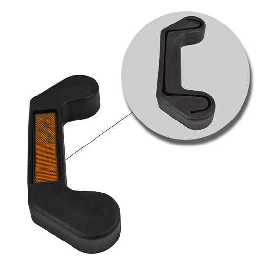 PUR protective cap with integrated reflector and steel retaining clips, for underride guard