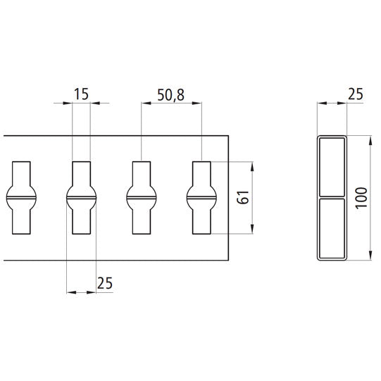 S-Line combi anchor insertion bar 6003,length: 4200 mm, width 25 mm, height100 mm,hole Ø 25 mm,BLC ∡90° + ∡45°: 500 daN with end fitting 5001,material: aluminum anodised,installation area: insertion and stanchion pockets,compatible with loading beams for combi hole pattern and all combi anchor channel end fittings
