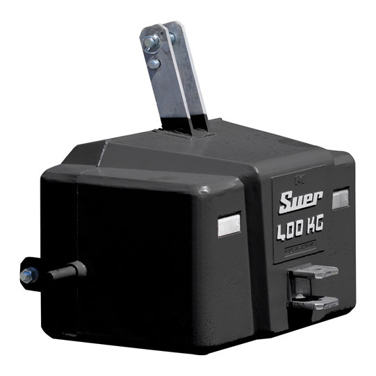 Suer reinforced concrete weight SBC Combi,400 kg, black, for front and rear hydraulic systems of category 0/I/II, mounting distance 70 mm, coupling point 185 mm, top link support and manoeuvring coupling hot-dip galvanized, white reflectors at the front,780 × 750 × 460 mm (w × d × h)