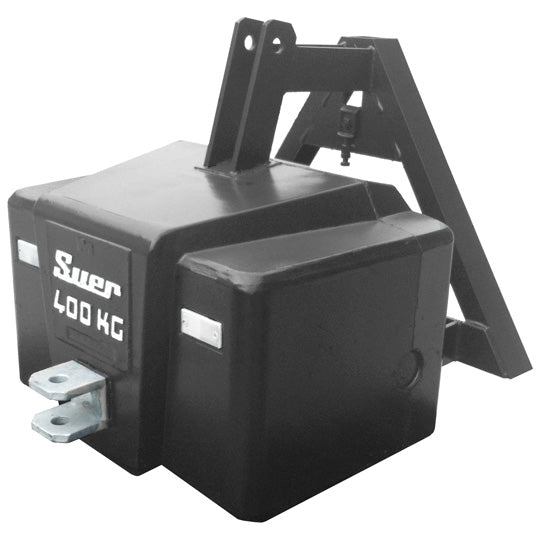 Suer reinforced concrete weight Kommunal SBD 400, 400 kg, grey, for front and rear hydraulic systems with triangle cat. I/II/III, manoeuvring coupling hot-dip galvanized, white front reflectors, 680 × 520 × 480 mm (w × d × h)