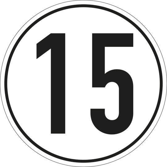 Speed sign Germany 15 km/h, self-adhesive film, Ø 200 mm, non-reflective, white background, black print, PU 5 pieces, according to StVZO § 58