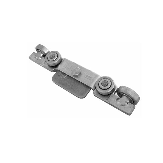 Carriage for profile 300, for welding, with swivel joint and guide rollers, galvanized rollers and top section, raw weld-on plate, for electronic or hydraulic drive