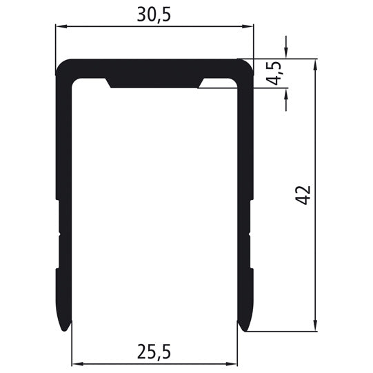 Alumiiniprofiili 25 U-reunalista, anodisoitu E6/C0 (EV1) -värillä, varastopituus 6000 mm