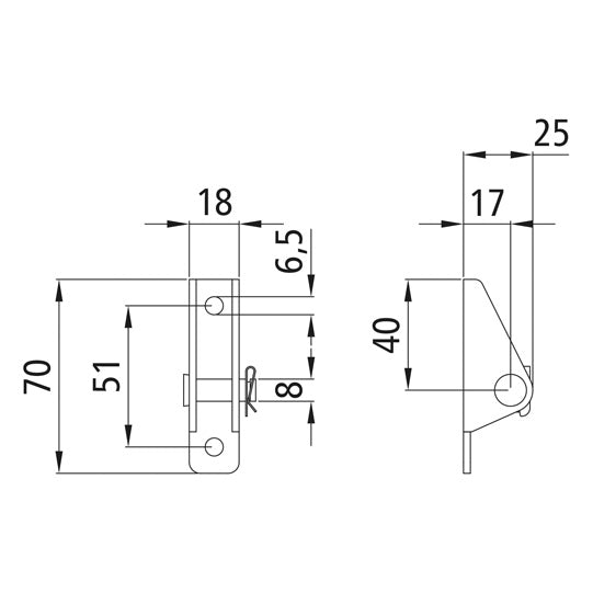 Laakerikenkä/kaasujousen pidike, pieni, sinkittyä terästä, sisältää urallisen pultin ja SL-lukon