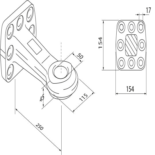 Vetosilmukka fm C/D laipalla, 8 reikää, vetosilmukka Ø 50 mm, D