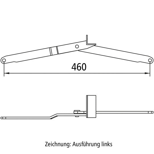 Edscha-kompensaatioliitos, oikeakätinen versio, nimellispituus 460 mm, sinkittyä terästä, sopii kattokaltevuuksille 0 mm ja 50 mm