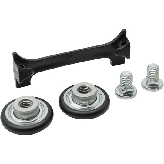 Toimitukseen sisältyy: 2 x muovirullaa, 1 x muoviklipsi, 2 x ruuvia