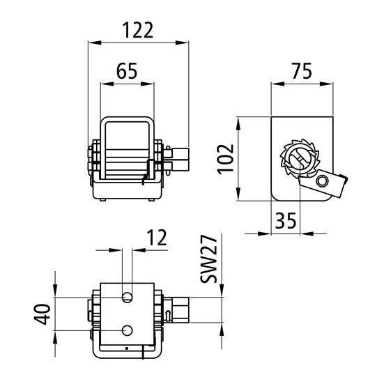 Sidontavinssi 1880, maalattu/sinkitty, jousituella, takapotkunestolaitteella, hihnan leveydelle enintään 50 x 6 mm, avainväli 27 mm