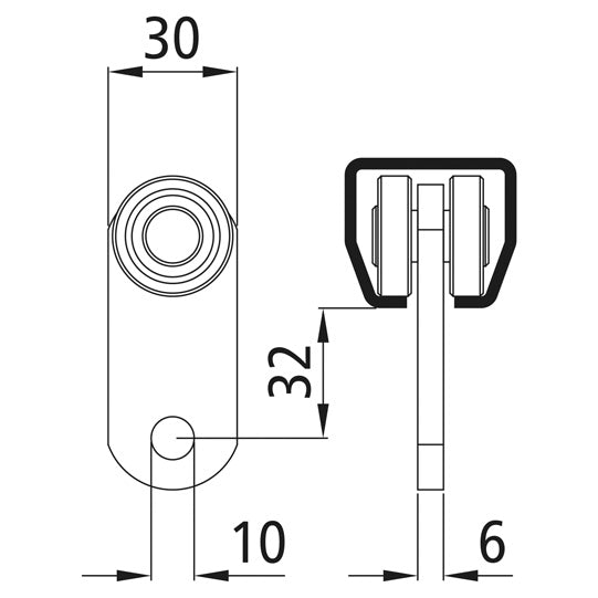 Pyörä profiilille 300/tyypille 23, sinkittyä terästä, yksi pari, reikä ripustusta varten