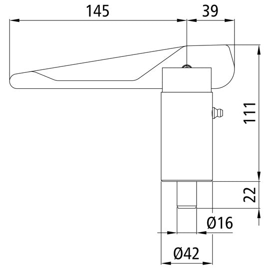 Jousipultti/tukijalan varmistin, lukituslaitteella ja rasvanipalla, käsivipu ja pultti Ø 16 mm, sinkittyä terästä, raakateräskotelo