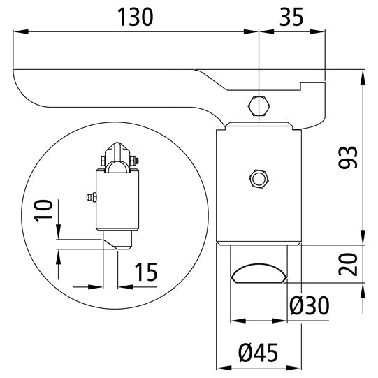 Jousilukko/tukijalan lukko vaihtolavalle, lukitusmekanismilla, rasvanipalla, raakaterästä, pultti Ø30 mm viistetty