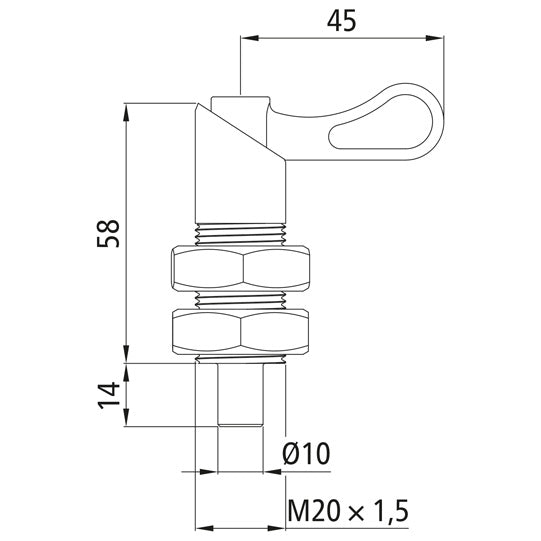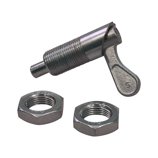 Jousipultti SG 1014, lukituksella, ulkoholkki M20 × 1,5 kierteellä, pituus 30 mm, kierteen pituus 28 mm, 2 lukkomutteria DIN 936, pultin puristusvoima n. 50 N, sinkittyä terästä