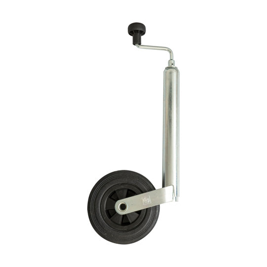 Nokkapyörä ST 48, 200 V, umpikumirenkaat muovivanteella, aksiaalilaakerilla, ulkoputken Ø 48 x 2,3 mm, putken pituus 370 mm, kokonaiskorkeus 630 mm, enimmäiskuorma paikallaan 150 kg, sinkitty,