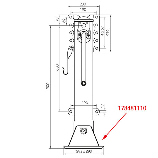 T-jalka JS D04, täydellinen ruuviliitoksella, MODUL-tukivinsseille