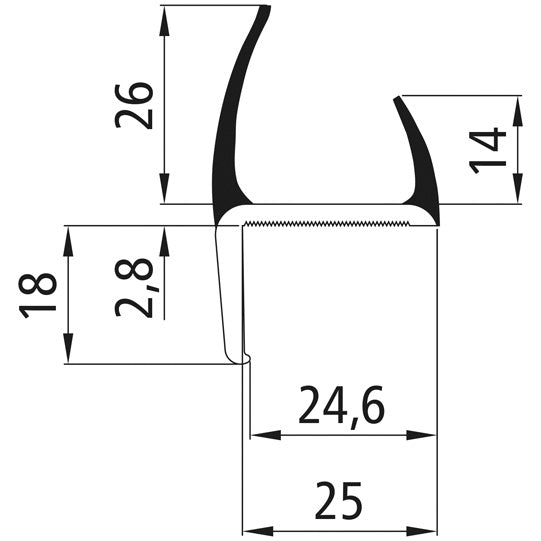 108071649PVC hård-mjuk profil, grå, 25 mm, L 3000 mm