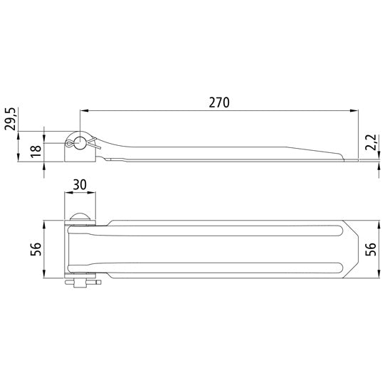 Klaffgångjärn 114 M, längd 270 mm, galvaniserat stål, lättviktskonstruktion, inklusive gångjärnslager, stift och saxsprint, komplett monterad