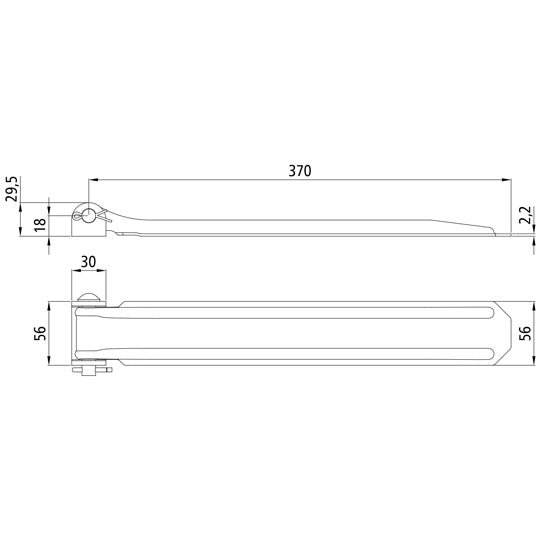 Justerbart gångjärn på sidan 370 mm, helt galvaniserat