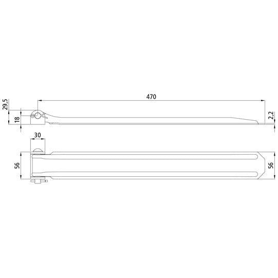 Justerbart gångjärn på sidan 470 mm, helt galvaniserat