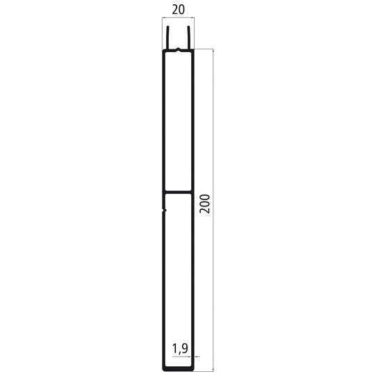 Aluminiumprofil 20 mm insats, 200 mm nedre del, fräst yta, 7500 mm lagerlängd