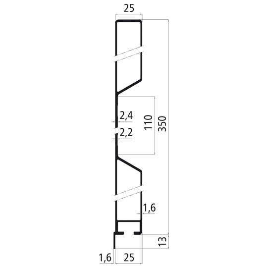 Aluminium 25 mm hel 350 mm sidobräda med presenningsurtag