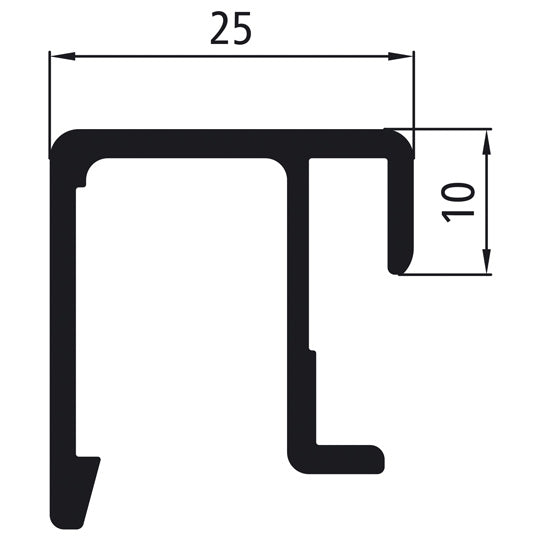 Aluminiumprofil 25 SL, 10 mm toppstycke, fräst, 7500 mm lagerlängd