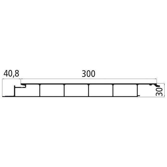 Golvprofil i aluminium 300 mm, slät, för 30 mm golvsänkning, sluten nedtill, anodiserad i E6/C0 (EV1) naturfärg, 7650 mm originallängd