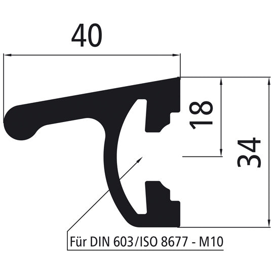 Aluminium slagskydd, för M10-skruvar, 34 mm hög, 40 mm djup, med dold infästning, anodiserad i E6/C0 (EV1) naturfärg, 6000 mm lagerlängd