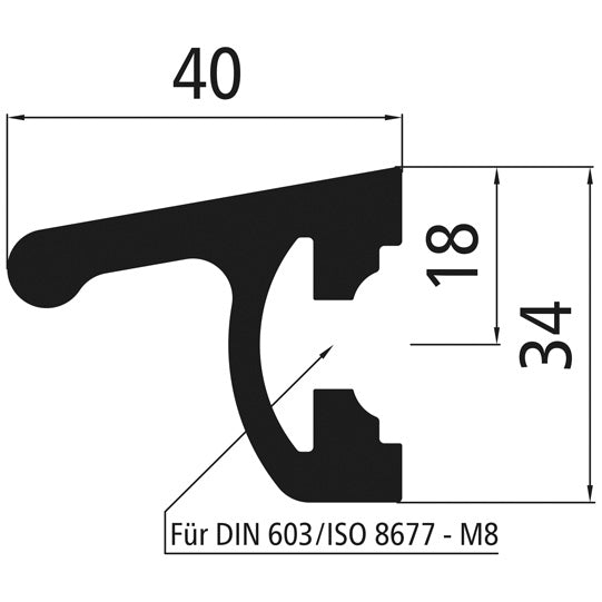 Aluminium slagskydd, för M8-skruvar, 34 mm hög, 40 mm djup, med dold infästning, anodiserad i E6/C0 (EV1) naturfärg, 6000 mm lagerlängd