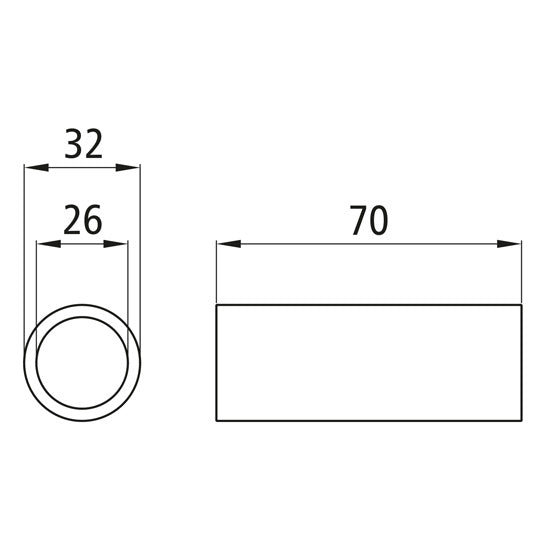 Fjäderbussning i mässing, inner-Ø 26 mm, ytter-Ø 32 mm, längd 70 mm