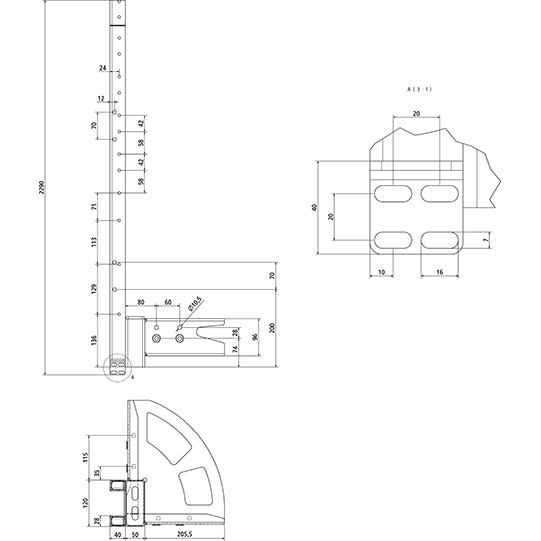 Hörnstolpe med fästhörn, 2850 mm, bak vänster
