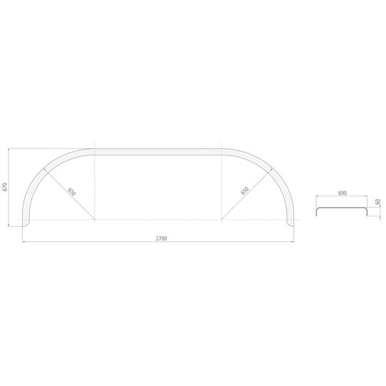 Dubbelaxlad stänkskärm D ALQ69270 (rund form), aluminiumrutplåt 2,5/4 mm, 3-sidigt svetsat kantskydd, 690 × 3570 × 670 × 650 × 2700 mm (b × l × h × b × s)