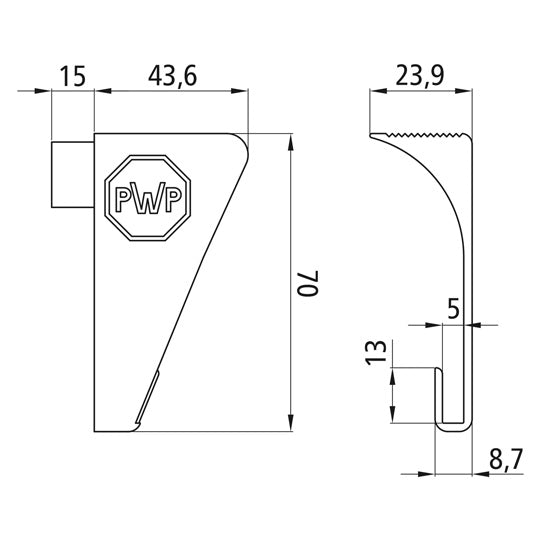 Ändkåpa, plast, höger, för PWP aluminiumreflektorlist 114967
