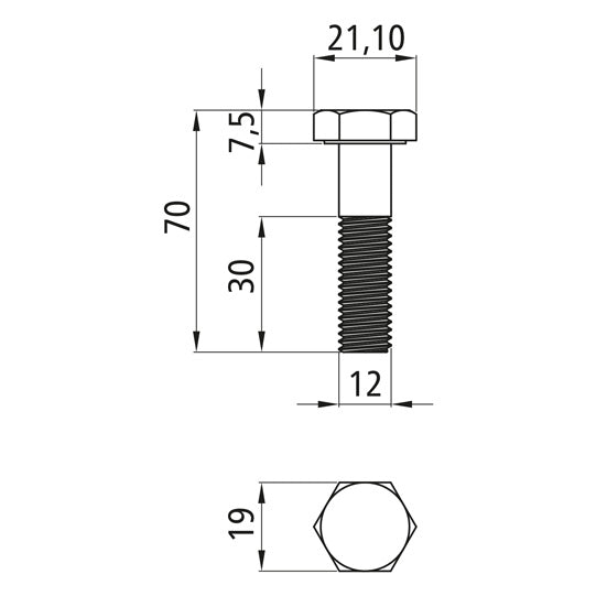 Sexkantsskruvar med skaft, förzinkade, M 12 x 70