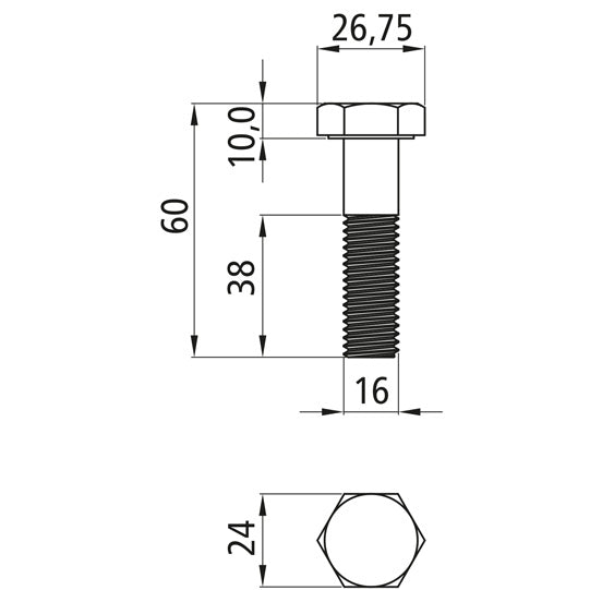 Sexkantsskruvar med skaft, förzinkade, färglöst passiverade, M 16 x 60, DIN-EN-ISO 4014 (gammal DIN 931) 8.8