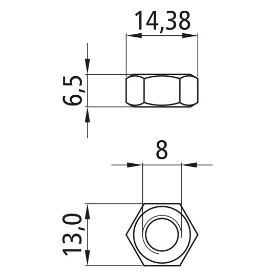 Sexkantsmutter, förzinkad, M 8, DIN-EN-ISO 4032-8 (gammal DIN 934-8)